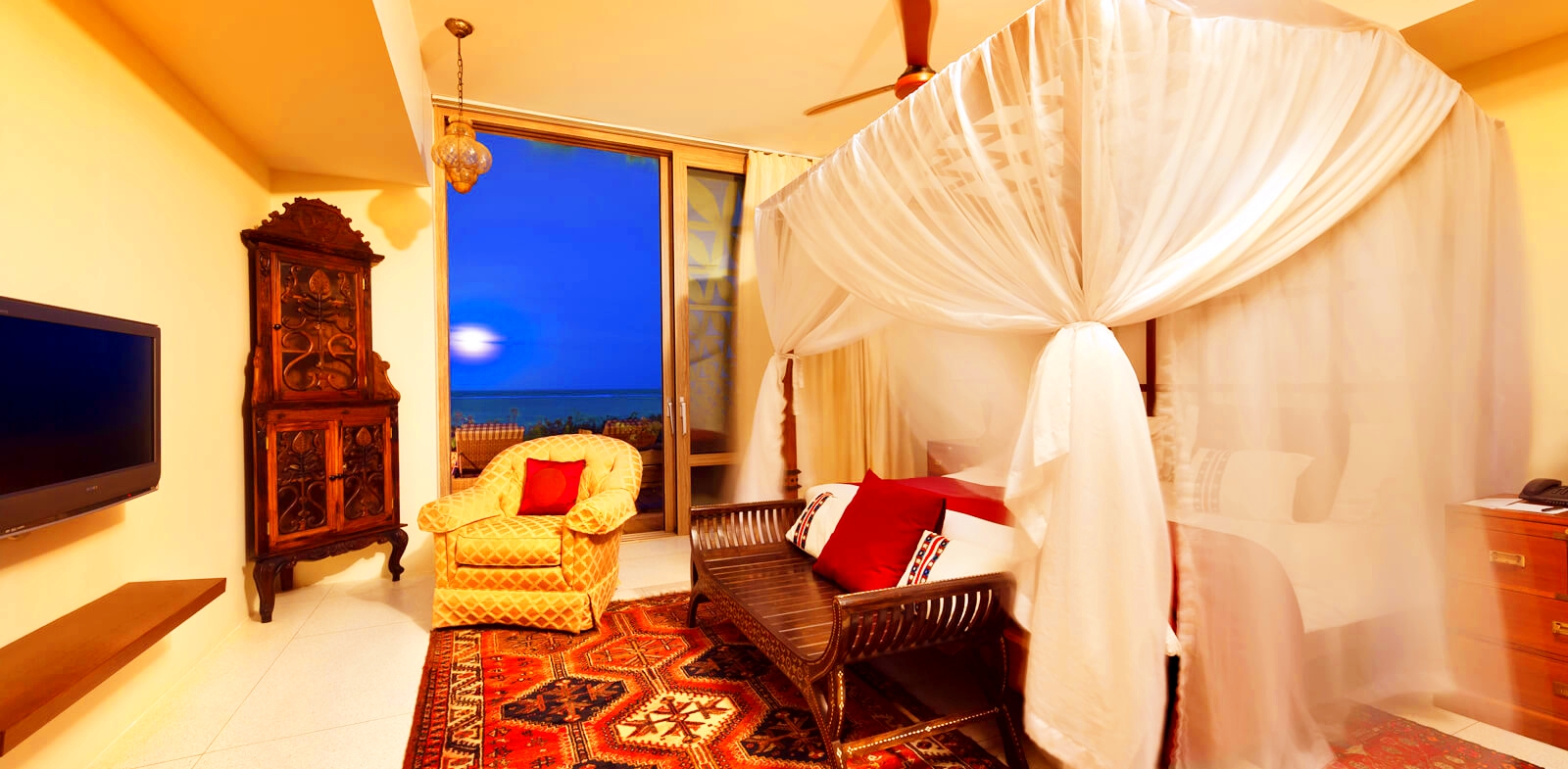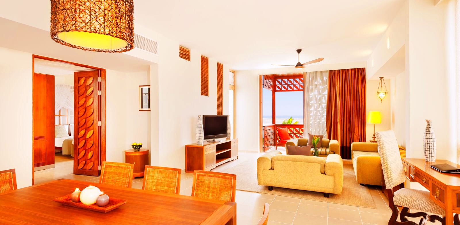 Tipuri de camera: One bedroom Villa, Two bedroom Villa, Three bedroom Villa, Family room, Melia Room with terrace and sea view, Grand Suite Zanzibar, Romance Ocean Front Pavilion.