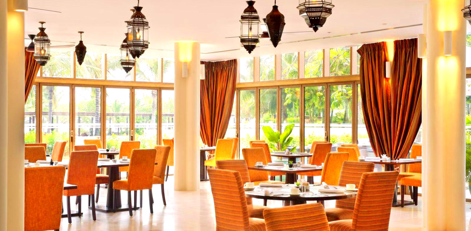 Resortul de lux african isi asteapta oaspetii in 5 restaurante cu specific local si international. Restaurantul de pe ponton, Jetty, incanta gurmanzii cu preparate internationale. La restaurantul Aqua se serveste cina cu specific mediteranean cu influente orientale. Restaurantul Spices este recunoscut pentru bucataria asiatica, swahili, orientala si tropicala si este locul unde au loc show-uri de cooking cu preparate locale. In schimb, la restaurantul Gabi se savureaza salate si fructe de mare la gratar chiar pe plaja, in timp ce restaurantul de langa piscina ofera mancare tip fast-food.